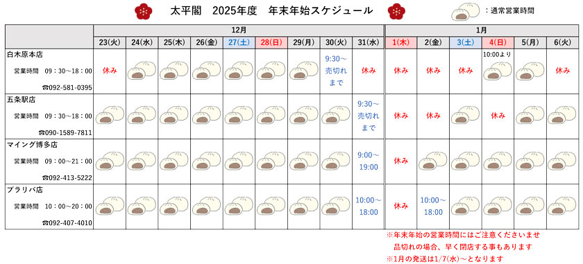 白木原本店は2026年1月4日(日)10:00より通常営業いたします。